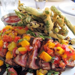 This is exciting... Jason's Restaurant has a new owner, David Monson, who also has Farm House Local in downtown Larkspur. David was classically trained in Paris in 1987 at the Chambre de Commerce, Ecole Ferrandi. (After working with renowned chefs Wolfgang Puck, Jeremiah Tower and Patrick Glennon, David traveled overseas to Melbourne, Bombay and Hong Kong showcasing his unique brand of California cuisine. In 1995, David was awarded the Best Restaurant of the Year in Hong Kong at the Napa Restaurant located on the top floor of the Kowloon Shangri-La Hotel.) Anyway, David now also owns Jason's, and having dined here three times, I am happy to report that it is better and more delicious than ever! Most of the menu is still the same delicious goodness, and most of the staff is the same. So that is all good! One important addition is the new general manager, Andrew, who is there most of the time to supervise the dining room and the kitchen. He is very capable, and makes sure that everything is working as it should, and that the dishes and service are excellent. Tonight we tried a variety of dishes, starting with one of the signature appetizers, the Dragon Prawns. Jason invented this dish, and it is noteworthy. The prawns are battered in Tempura, then put on top of a greens mixture, drizzled with Aioli and a bit of salmon roe. Very tasty! Then we ordered the classic Calamari Fritti. This is as good as it gets, and it is perfect. We asked for extra crispy, and loved every bite. Then, we shared the NY Strip Sirloin, and again it was a great entree and perfectly prepared medium rare. Served with garlic mashed potatoes and chimchuri on the side. Scrumptious! For dessert, we had one of Jason's classics, the absolutely divine Profiteroles, combining dark chocolate sauce, light pastry, and ice cream. This is a must-have! Our servers, Antonio, and Stanley, were so attentive and nice. In summary, this is a great Marin restaurant. Plenty of parking, reasonable prices, lovely decor, excellent service, and really delicious food. Highly recommended!